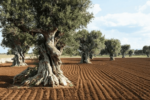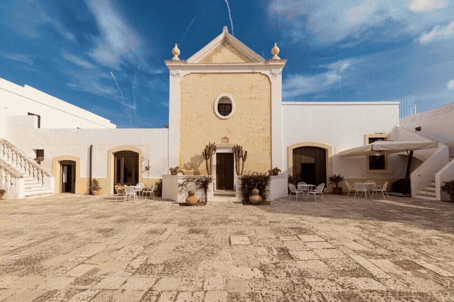 Rural setting with traditional masserias, ancient olive groves, and peaceful landscapes.